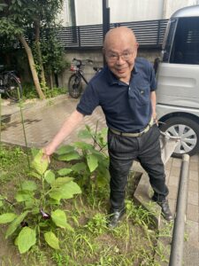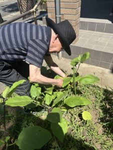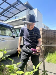 ナスもできました🍆 2025.07.31 そのほか 数日前からナスの実が少しずつ、少しずつ大きくなり、まだかまだかと皆で毎日見守り、畑隊長の「もう良いよ!」の合図で収穫となりました♪皆さんがいつも楽しみにしている手作りの昼食時に【茄子の煮浸し】を一品添えて、皆で美味しくいただきました♡